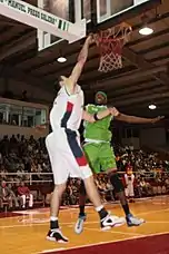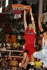 ![]() Fernandez dunking in a home game with the Campeche Bucaneros | |