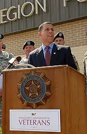 Brown was the nation's highest-ranking elected official to have served a tour of military duty in Iraq[5][6] and he led the O'Malley-Brown Administration's work to improve benefits and services for Maryland's veterans.
