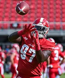 ![]() Johnson before a Stampeders game in 2019. | |||||||||