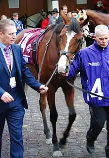 Anthony Van Dyck (19 May 2016 – 3 November 2020)[2] was an Irish Thoroughbred racehorse, best known for winning the 2019 Epsom Derby. He was a top-class two-year-old in 2018 when he won three of his seven races including the Tyros Stakes and the Futurity Stakes as well as finishing second in the National Stakes and third in the Dewhurst Stakes. He won the Derby Trial Stakes on his three-year-old debut before taking the Epsom Derby on 1 June. Later that year he was placed in the Irish Derby, Irish Champion Stakes and Breeders' Cup Turf. He remained in training as a four-year-old in 2020, winning the Prix Foy and running second in both the Coronation Cup and the Caulfield Cup. He was euthanized after breaking down in the 2020 Melbourne Cup on 3 November 2020.[2]