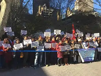In 2015, Phumlani Mfeka, a KwaZulu-Natal businessman and the spokesman for the radical Mazibuye African Forum tweeted "A good Indian is a dead Indian".[79][80][81] He published a letter in the city press claiming that South Africans of Indian origin have no right to citizenship and property in South Africa. Mfeka also claimed there is a "ticking time bomb of a deadly confrontation" between Africans and Indians in KwaZulu-Natal. The South African court barred him from making anti-Indian remarks in Nov 2015.[82]
