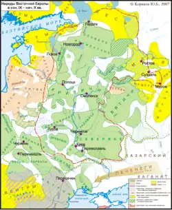 Archaeological research, synthesizing a wide range of 20th-century excavations, has begun to develop what Jonathan Shepard has called a 'bottom up' vision of the formation of the Rus' polity, in which, during the ninth and 10th century increasingly intensive trade networks criss-crossed linguistically and ethnically diverse groups around rivers like the Volga, the Don, the Dnieper. This may have produced "an essentially voluntary convergence of groupings in common pursuit of primary produce exchangeable for artefacts from afar".[55] This fits well with the image of Rus' that dominates the Arabic sources, focusing further south and east, around the Black and Caspian Seas, the Caucasus and the Volga Bulghars.[56] Yet this narrative, though plausible, contends with the 'top-down' image of state development implied by the Primary Chronicle, archaeological assemblages indicating Scandinavian-style weapon-bearing elites on the Upper Volga, and evidence for slave-trading and violent destruction of fortified settlements.[57][58]