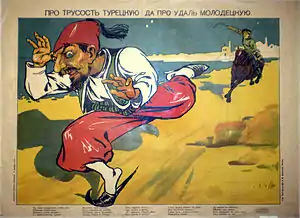 Voltaire and other European writers described the Turks as tyrants who destroyed Europe's heritage; with Voltaire characterizing Turks as "tyrants of the women and enemies of arts" and "barbarian usurpers who must be chased out of Europe."[6] In his book Orientalism, Edward Said noted, "Until the end of the seventeenth century the 'Ottoman peril' lurked alongside Europe to represent for the whole of Christian civilization a constant danger, and in time European civilization incorporated that peril and its lore, its great events, figures, virtues, and vices, as something woven into the fabric of life."[22]
