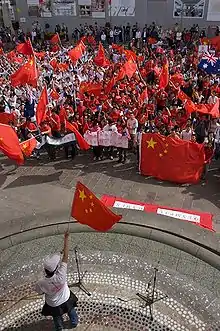 Protests also took place in Athens,[28] Istanbul,[29] Buenos Aires,[30] Bangkok,[31] Canberra,[32] Nagano,[33] and Seoul.[34] In response, Chinese government officials condemned the protests[35] and overseas Chinese organised 'pro-China' counter-demonstrations at torch processions,[36] joined by counter-protests in many Chinese cities.[3]