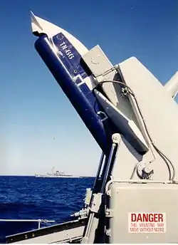 An anti-submarine missile is a standoff anti-submarine weapon. Often a variant of anti-ship missile designs an anti-submarine systems typically use a jet or rocket engine, to deliver an explosive warhead aimed directly at a submarine, a depth charge, or a homing torpedo that is carried from a launch ship, or other platform, to the vicinity of a target.