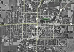 The city was founded in 1876[8][9] by Francis A. Deleglise,[10][11] accompanied by George Eckart.[12] The log cabin in which Deleglise lived is preserved and on display at the Langlade County Historical Society Museum.[13] A street in Antigo also bears his name. The city gained its charter in 1883.