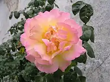 In 1939, just months before Germany's invasion of France, Francis sent cuttings of a promising rose cultivar to fellow rose growers in Germany, Italy, and Turkey, and also to the Conard-Pyle company in the U.S. Francis named the pink and yellow blend rose, ‘Madame Antoine Meilland,’ after his late mother, Claudia, who had died in 1932. In the U.S., the new rose was successfully propagated. It was later introduced on April 29, 1945, on the same day that Berlin surrendered to Allied forces. The rose was given the marketing name, 'Peace', in the U.S, to mark the end of the war. It was an immediate commercial success and sold extremely well worldwide.[8][9]