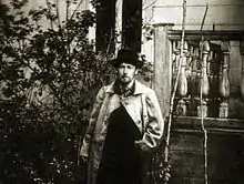 Chekhov remained in Taganrog for three more years, boarding with a man by the name of Selivanov who, like Lopakhin in The Cherry Orchard, had bailed out the family for the price of their house.[24] Chekhov had to pay for his own education, which he managed by private tutoring, catching and selling goldfinches, and selling short sketches to the newspapers, among other jobs.[25] He sent every ruble he could spare to his family in Moscow, along with humorous letters to cheer them up.[25] During this time, he read widely and analytically, including the works of Cervantes, Turgenev, Goncharov, and Schopenhauer,[26][27] and wrote a full-length comic drama, Fatherless, which his brother Alexander dismissed as "an inexcusable though innocent fabrication."[28] Chekhov also experienced a series of love affairs, one with the wife of a teacher.[25]