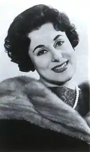 She performed there successfully until 1960, in eight roles in 71 performances,[8] including Leonora in Il trovatore, Amelia in Verdi's Un ballo in maschera, Tosca, and Elisabetta.[3] In 1958 she had a particular success in a new Metropolitan production of Madama Butterfly designed in the manner of Japanese woodblock prints. Her assimilation of Japanese physicality and gesture was particularly praised.[1] Her Leonore in Il trovatore was also presented in a new production at the Metropolitan in 1958 to public and critical acclaim.[6] Stella was an elegant, glamorous figure on stage and an accomplished actress. In 1970, she appeared in Rome as Irmengarda in Spontini's Agnes von Hohenstaufen, conducted by Riccardo Muti.[1] She appeared in the title role in the world premiere of Maria Stuarda by Enzo de Bellis at the Teatro di San Carlo in Naples in 1974.[3]