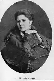 Antonina Ivanovna Abarinova (Russian: Антони́на Ива́новна Аба́ринова, 24 July 1842, Vladimir – 29 July 1901, Sukhodol, Tula Governorate, Imperial Russia) was a Russian Empire opera singer (originally contralto, later mezzo-soprano) who performed at Maryinsky Theatre, while being also an Alexandrinsky Theatre actress.[1]