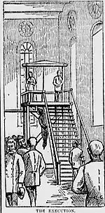 About a month after the sentencing, his attorneys filed a motion for a new trial, citing new evidence that would prove that their client was innocent.[14] They had received a letter from a friend of Nardello who claimed he could provide witnesses that would indicate where Nardello was, and even named them, but in the end, the motion was denied.[15] While residing on death row, Nardello turned towards religion and wrote letters to newspapers in his home country, as well as sending copies of his photographs to relatives in Italy.[16] Much to his pleasant surprise, on May 5, he was granted a three-week reprieve by President Grover Cleveland,[17] but after it passed, Nardello was informed that his sentence wouldn't be commuted, and the execution would proceed as planned.[18]