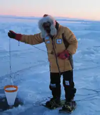 ![]() Antony Jinman conducting scientific research at the North Pole in 2010 | |