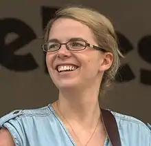 Aoife O'Donovan (/ˈiːfə/ EE-fə, Irish: [ˈiːfʲə]; born November 18, 1982)[1] is an Irish-American singer and Grammy award-winning songwriter. She is best known as the lead singer for the string band Crooked Still[2] and she also co-founded the Grammy Award-winning female folk trio I'm with Her. She has released three critically acclaimed studio albums: Fossils (2013), In the Magic Hour (2016), and Man in a Neon Coat: Live from Cambridge (2016), as well as multiple noteworthy EPs, including Blue Light (2010), Peachstone (2012), In the Magic Hour: Solo Sessions (2019), and Bull Frog's Croon (and Other Songs) (2020). She also spent a decade contributing to the radio variety shows Live from Here and A Prairie Home Companion. Her first professional engagement was singing lead for the folk group The Wayfaring Strangers.[3]