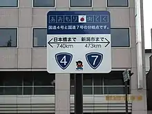 The Aomori West Bypass (青森西バイパス Aomori Nishi Bypass) is a major highway located entirely in the city of Aomori in northern Japan. The highway main function is to link the western part of the city to its center. Signed as National Route 7, it connects the main section of National Route 7 to the northern terminus of National Route 4, meeting at Hakko Dori in front of the prefecture office of Aomori. The route also carries National Route 101 to its northern terminus at National Route 4 as well.[1]