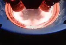 The launch placed the S-IVB and CSM into a nearly circular 190-kilometer (100 nmi) orbit, a nominal parking orbit that would be used on the actual lunar missions. After two orbits, in a simulation of the trans-lunar injection burn that would take later Apollo missions towards the Moon,[53] the S-IVB's first in-space re-ignition put the spacecraft into an elliptical orbit with an apogee of 17,218 kilometers (9,297 nmi) and a perigee deliberately aimed 84.6 kilometers (45.7 nmi) below the Earth's surface; this would ensure both a high-speed atmospheric re-entry of the command module, and destruction after re-entry of the S-IVB. Shortly after this burn, the CSM separated from the S-IVB and fired its service module engine to adjust the apogee to 18,092 kilometers (9,769 nmi). After passing apogee, the service module engine fired again for 281 seconds to increase re-entry speed to 11,168 meters per second (36,639 ft/s), at an altitude of 120 kilometers (400,000 ft) and a flight path angle of −6.93 degrees, simulating conditions on a return from the Moon.[54]