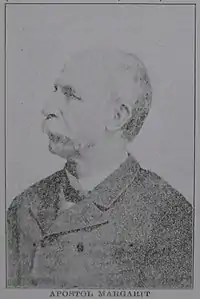 Apostol Mărgărit or Apostolos Margaritis (5 August 1832 in Avdella – 19 October 1903 in Bitola) was an Aromanian school teacher and writer. One of the most important voices of Aromanian emancipation in the 19th century, he conditioned Romania's policy toward the Aromanians, who started to have their own schools in their own language, thanks to Mărgărit's efforts.[1]