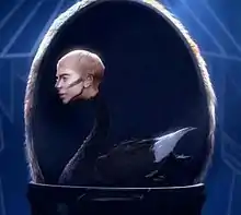 The video itself includes shots taken in both color and black-and-white. It drew heavy inspiration from the arts and featured references to Sandro Botticelli's The Birth of Venus and Andy Warhol's Marilyn Diptych.[83] The video included artistic and complex scenes such as Gaga's head on a swan, a scene in a bird cage, and the singer seated in a large top hat, as well as more simplistic scenes including Gaga walking in a black outfit wearing a headscarf, and the singer dancing with a white cloth in bright make-up, in a scene similar to the cover art of the single. Throughout the video bursts of color are shown theatrically. As Gaga sings the line "One second I'm a Koons then suddenly the Koons is me", she is transformed into a black swan/human hybrid.[84] Gaga also wears hand-shaped lingerie and a seashell bra with matching shell decoration. Near the climax, the singer features in a violet, crystal-like scene, holding a silver, leg-shaped bouquet of colorful flowers. The final chorus concludes in flashing images from various scenes of the video. and at the end, Artpop is spelled using hand gestures.