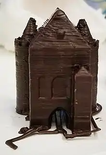 3D printing is used to manufacture moulds for making jewelry, and even the jewelry itself.[93] 3D printing is becoming popular in the customisable gifts industry, with products such as personalized models of art and dolls,[94] in many shapes: in metal or plastic, or as consumable art, such as 3D printed chocolate.[95]