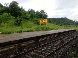 Apta railway station is a railway station on the Panvel–Roha route of Central Railway in India. The station is situated in Raigad district of Navi Mumbai city in Maharashtra. It is 83.24 km from Chhatrapati Shivaji Maharaj Terminus via Diva Junction. Its station code is APTA. It belongs to the Mumbai Railway Division of Central Railway.[2]