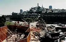 The aquarium was originally scheduled to be opened in the summer of 1988, but construction on the aquarium was delayed due to protests from merchants on Fisherman's Wharf and San Francisco Bay environmental groups, and ground was not broken until July 1995.[4] Specific objections included the amount of fill required (an additional 24,000 square feet (2,200 m2) would need to be reclaimed from the Bay) and a potential violation of the city's 1990 Proposition H, which prohibits nonmaritime use of waterfront property.[5][6][7] The aquarium was privately owned by a partnership of Questar of New Zealand, Aquabay Inc., and Pedersen Associates (The Chronicle Publishing Company, which owned the San Francisco Chronicle, was a minority partner in Pedersen).[4]