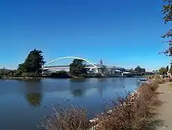 Aquatic Park is a public park in Berkeley, California, United States, located just east of the Eastshore Freeway (Interstate 80) between Ashby and University Avenues. The Works Progress Administration created the park in the 1930s simultaneously with the nearby Berkeley Yacht Harbor.[1] Its centerpiece is an artificial mile-long lagoon that was cut off from San Francisco Bay by the creation of a causeway for the Eastshore Highway, during the construction of the approaches to the San Francisco–Oakland Bay Bridge, also in the 1930s. The lagoon still communicates with the Bay through culverts under the freeway (one in line with Ashby Avenue, the other in line with Grayson Street). The east shoreline of the lagoon used to be the original shoreline of San Francisco Bay.