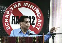 Aquilino Quilinging Pimentel Jr. (Tagalog pronunciation: [pimenˈtel], December 11, 1933 – October 20, 2019),[1] commonly known as Nene Pimentel, was a Filipino politician and human rights lawyer[2] who was one of the leading political opposition leaders during the regime of Ferdinand Marcos from the declaration of martial law in 1972 until the People Power Revolution in 1986, which removed Marcos from power.[3][4] He co-founded the country's current ruling party Partido Demokratiko Pilipino–Lakas ng Bayan (PDP–Laban) and served as the President of the Senate of the Philippines from 2000 to 2001. He was the father of incumbent senator and former Senate President Aquilino Pimentel III.