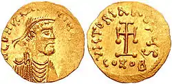 The Saracen Wars of Justinian II (r. 685–695 and 705–711), last emperor of the Heraclian Dynasty, "reflected the general chaos of the age".[60] After a successful campaign he made a truce with the Arabs, agreeing on joint possession of Armenia, Iberia and Cyprus; however, by removing 12,000 Christian Mardaites from their native Lebanon, he removed a major obstacle for the Arabs in Syria, and in 692, after the disastrous Battle of Sebastopolis, the Muslims invaded and conquered all of Armenia.[61] Deposed in 695, with Carthage lost in 698, Justinian returned to power from 705 to 711.[60] His second reign was marked by Arab victories in Asia Minor and civil unrest.[61] Reportedly, he ordered his guards to execute the only unit that had not deserted him after one battle, to prevent their desertion in the next.[60]