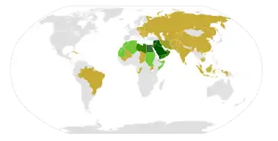 Today, 15 of the 22 members of the Arab League — Algeria, Comoros, Djibouti, Iraq, Kuwait, Lebanon, Libya, Mauritania, Oman, Qatar, Saudi Arabia, Somalia, Syria, Tunisia, and Yemen — do not recognise or have diplomatic relations with Israel; with the exceptions being Bahrain, Egypt, Jordan, Morocco, Palestine, Sudan, and the United Arab Emirates. At Arab League urging, a further 9 members of Organisation of Islamic Cooperation also do not have diplomatic relations with Israel — Afghanistan, Bangladesh, Brunei, Indonesia, Iran, Malaysia, Mali, Niger, and Pakistan.[22] In 2002, the Arab League offered normalisation of relations between Israel and Arab countries as part of the resolution of the Palestine-Israel conflict in the Arab Peace Initiative.
