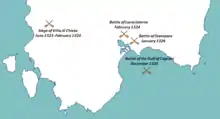 - On the 13 February, a week after the conquest of Villa di Chiesa, the Aragonese reached Castel di Castro taking position east of the castle, on the hill of Bonaria.[4] In order to relieve their army trapped in the city the Republic of Pisa sent a fleet of 40 galleys, 12 uxer, 60 other ships from Piombino to the command of the Count Manfredi della Gherardesca. The fleet sailed from Porto Pisano, the fleet made a stop at Terranova, today Olbia, where the fleet took onboard 200 horsemen from the Pisan possessions in Gallura along with other forces.[1]