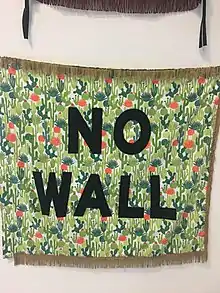 Sifuentes's Protest Banner Lending Library project was conceived following the 2016 presidential election. Sifuentes was unable to attend protests because she had a small child; she also felt she would be unsafe at such events because she was not then a US citizen.[5] The library is a space where folks can make banners, but also borrow a banner to be used in protest and then be returned. The project has taken place at the Jane Addams Hull-House Museum in partnership with Gallery 400, Smart Museum, Comfort Station, Chicago Cultural Center, School of the Art Institute of Chicago, the Art Institute of Chicago, the Handwerker Gallery at Ithaca College, the Johnson Museum of Art, and at the Whitney Museum — where she worked with Cauleen Smith as part of the 2017 Whitney Biennial's programming.[6]