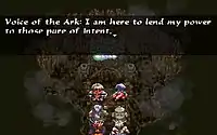 Andel branded Arc and friends as criminals for the king's death and the castle's destruction and puts a bounty on the party. They disguise themselves when returning to Seirya to extinguish the Flame Cion. Arc and Kukuru extinguish the flame. The Ark Ghoul reappears and flees to the Ark, and Arc and Kukuru chase after him. The other party members join them and head to Sabatico Falls. Inside Sabatico Falls, they find the Ark, which tests their power first by having them fight a doppelganger form of the party. After the Ark and the Guardians reveal that mankind's only saving grace will be their ability to love one another, Arc and Kukuru are given The Power of Bravery and Divine Power respectively.