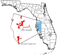 The Arcadia Formation and Tampa Member is located southwestern flank of the Ocala Platform from Pasco County and southward in to Hillsborough and Sarasota County, Florida. The Tampa Member and the lower part of the Arcadia Formation form the upper part of the Floridan Aquifer system in parts of southern Florida.[1]