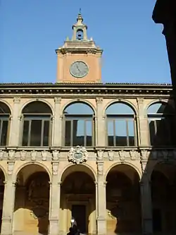 The Archiginnasio of Bologna is one of the most important buildings in the city of Bologna; once the main building of the University of Bologna, it currently houses the Archiginnasio Municipal Library and the Anatomical Theatre.