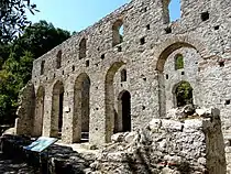 Christianity has a long and continuous history in Albania and was introduced as early as the time of the Apostles.[20][21] Sacred structures, such as churches, basilicas, baptisteries, started to appear consequently after the Roman invasion of Illyria. An Early Christian architecture style developed in Albania between the 4th and 6th century.[1] As the Roman Empire fell into east and west, the Eastern Roman Empire kept Roman architectural elements alive and became popular for its slightly flatter domes and the richer usage of murals and icons rather than statues.