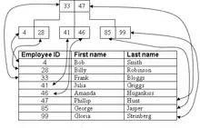 Btrieve uses a b-tree format to store record indexes on particular table columns. The index maps each set of indexed column values to the set of unique identifiers for the rows that have those column values, which provides a quick way to find the rows within a table using the indexed column. B-trees are tree data structures and are very efficient as a mechanism for fast data retrieval. The drawback of a btree is that data must be constantly balanced when it is inserted into the tree, therefore Btrieve only stores the record index as btree to reduce the amount of time it takes to insert and update records. A separate b-tree is kept for each index in the system, and the root node information is kept in the FCR. In Btrieve 6.x a new index can be created at file creation time, or added and dropped after the file is created. Index pages are also created as they are needed. Before Btrieve 6.0 existing key indexes could not be removed, though supplemental indexes could be created and dropped as needed.