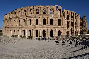 After defeating Carthage, Rome progressively took over the entire coast of North Africa from Egypt to the Atlantic coast of modern-day Morocco. Most of present-day Tunisia was occupied by the Roman province known as Africa. Significant remains of Roman architecture can be found in Tunisia today, including Roman Carthage, the amphitheater of El Jem, the site of Dougga (Thugga), the temples of Sbeitla (Sufetula), and others.[6][7][8] After the fall of the Western Roman Empire, the Eastern Roman or Byzantine Empire continued to rule parts of the region up until the 7th century.