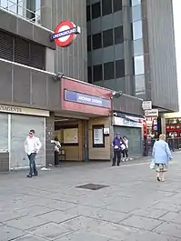 In 1930 the station was upgraded with escalators[19] to replace the original lifts and the secondary entrance was replaced with a modern design by Charles Holden,[16] virtually identical to the one he built at the same time at Hammersmith. Holden's station was replaced in the 1970s.[16]