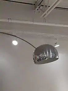 The Arco lamp is a modern overhead lamp designed by brothers Pier Giacomo and Achille Castiglioni for Flos in 1962.[1] The lamp is characterized by a suspended spun aluminum pendant attached to an upright slab of Carrara marble via a large, arching arm made of stainless steel.[2]