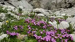 An Arctic–alpine taxon is one whose natural distribution includes the Arctic and more southerly mountain ranges, particularly the Alps.[1] The presence of identical or similar taxa in both the tundra of the far north, and high mountain ranges much further south is testament to the similar environmental conditions found in the two locations. Arctic–alpine plants, for instance, must be adapted to the low temperatures, extremes of temperature, strong winds and short growing season; they are therefore typically low-growing and often form mats or cushions to reduce water loss through evapotranspiration.[2]