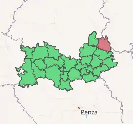Ardatovsky District (Russian: Арда́товский райо́н; Erzya: Орданьбуе; Moksha: Ардатовань аймак) is an administrative[1] and municipal[7] district (raion), one of the twenty-two in the Republic of Mordovia, Russia. It is located in the northeast of the republic. The area of the district is 1,192.5 square kilometers (460.4 sq mi).[3] Its administrative center is the town of Ardatov.[2] As of the 2010 Census, the total population of the district was 29,446, with the population of Ardatov accounting for 31.9% of that number.[4]