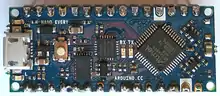 In 2019, Arduino released the Arduino Nano Every, a pin-equivalent evolution of the Nano. It features a more powerful ATmega4809 processor and twice the RAM.[3]
