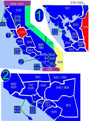 Central office prefixes of area code 209 are expected to be exhausted by late 2022.[1]