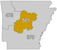 Area code 501 is a telephone area code serving central Arkansas, including Little Rock and most of its suburbs. The coverage area includes most communities in Cleburne, Conway, Faulkner, Garland, Hot Spring, Lonoke, Perry, Pulaski, Saline, White and Van Buren counties.