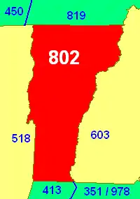Area code 802 is a telephone area code in the North American Numbering Plan (NANP) for the U.S. State of Vermont. AT&T established the numbering plan area (NPA) for the entire state with one of the original area codes in October 1947 and it remains Vermont's only area code.