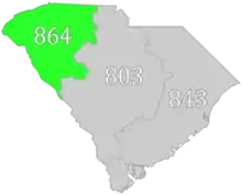 | West: 706/762 | Area code 864 | East: 803/839 |