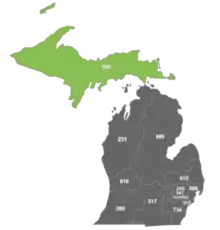- Map of Michigan area codes at North American Numbering Plan Administration's website