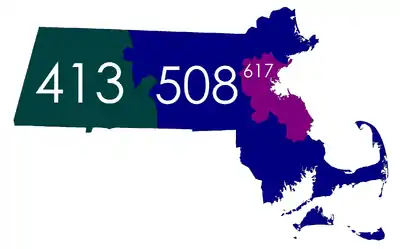 Area code 508 was created on July 16, 1988, in a split from 617.[1] Permissive dialing of 617 and 508 continued until January 1, 1989.