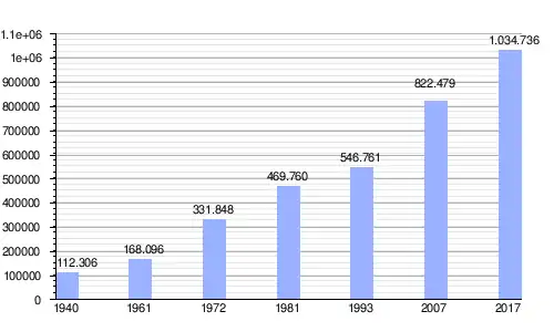 | Sources: Population 1940, 1961, 1972, 1981,[6] 1993,2007[1] Population 2015[4] |