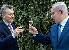 In September 2017, Israeli Prime Minister Benjamin Netanyahu paid an official visit to Argentina, becoming the first Israeli Prime Minister in office to visit Argentina and Latin America.[16]