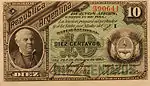 These bank notes were created originally in a bigger size and printed by the mint (Casa de Moneda), using French-made paper. Due to their size, and the paper not being of good enough quality, they began to deteriorate. They then decided to suspend the printing and look for another provider. The new notes, of smaller size, started to be issued in 1903, using typography as the printing method.